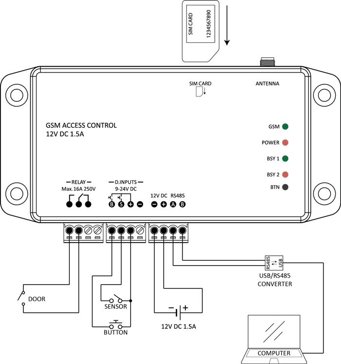 GSM Kapı Açma Modülü Tek Kapı - TD-G106, tek bir kapı için kullanılan bir cihazdır. Cihazın ayarları, yetkili numara ekleme, silme gibi işlemler için cihaza SMS gönderilerek yapılabilir. Cihazın içerisine takılı SIM kartın telefon numarasına belirli bir formatta SMS gönderilmesi gerekmektedir. Eğer SIM kart SMS gönderebiliyorsa, gönderdiğiniz mesajlara cevap mesajı alabilirsiniz.